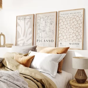3pcs Neutral Picasso Matisse Beige Exhibition Wall Art Prints Canvas Painting Poster Pictures For Living Room Home Decor