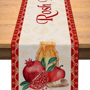 Linen Rosh Hashanah Table Runner Shana Tova Table Decoration Jewish New Year Party Home Kitchen Dining Room Table Decor