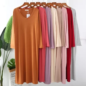 2023 Autumn Night Dress Women Loose large Nightgown Solid Color Sleepshirts Long-Sleeves Nightie Nightdress Modal Sleepwear