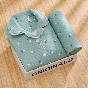 New Middle-Aged Women’s Pajamas Suit Autumn Winter Warm Loungewear Female Casual Air Cotton Cardigan Trousers Two Piece Set 4XL