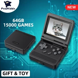 POWKIDDY V90 Black Version 3-Inch IPS Screen Flip Handheld Console Open System Game Console 16 Simulators PS1 Children’s Gifts