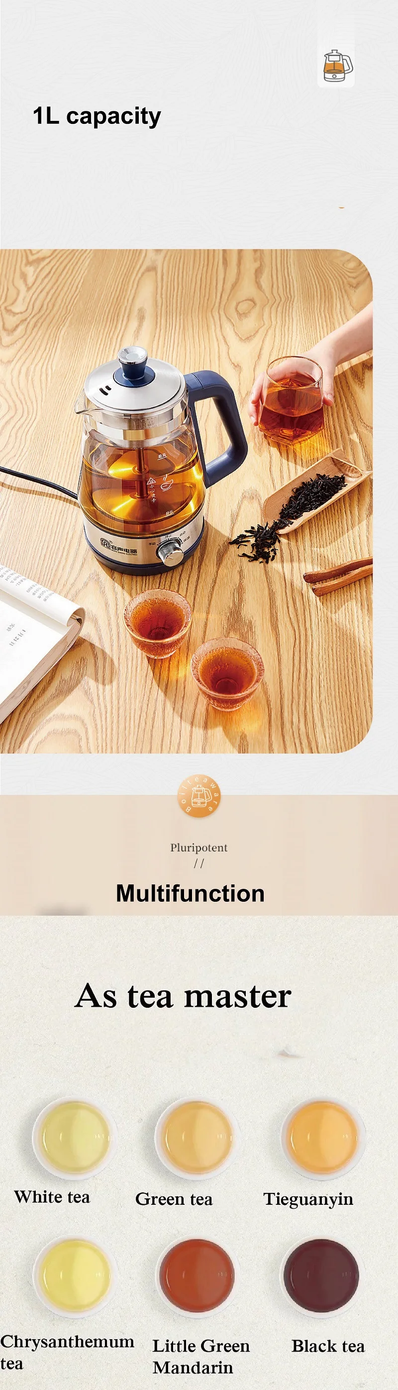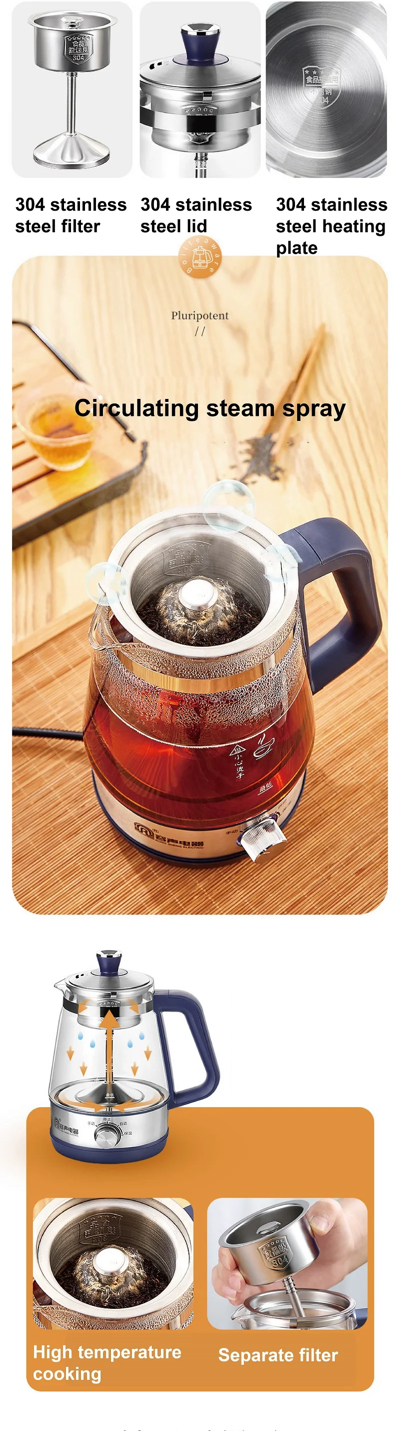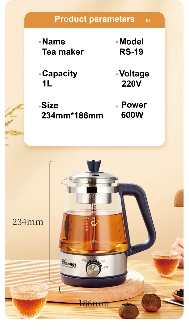 110V 220V Home Tea Maker Black Tea Pu'er Steaming Teapot Portable Automatic Thermal Keep Warm Steam Boiling Teapot Mini Health Pot 1L