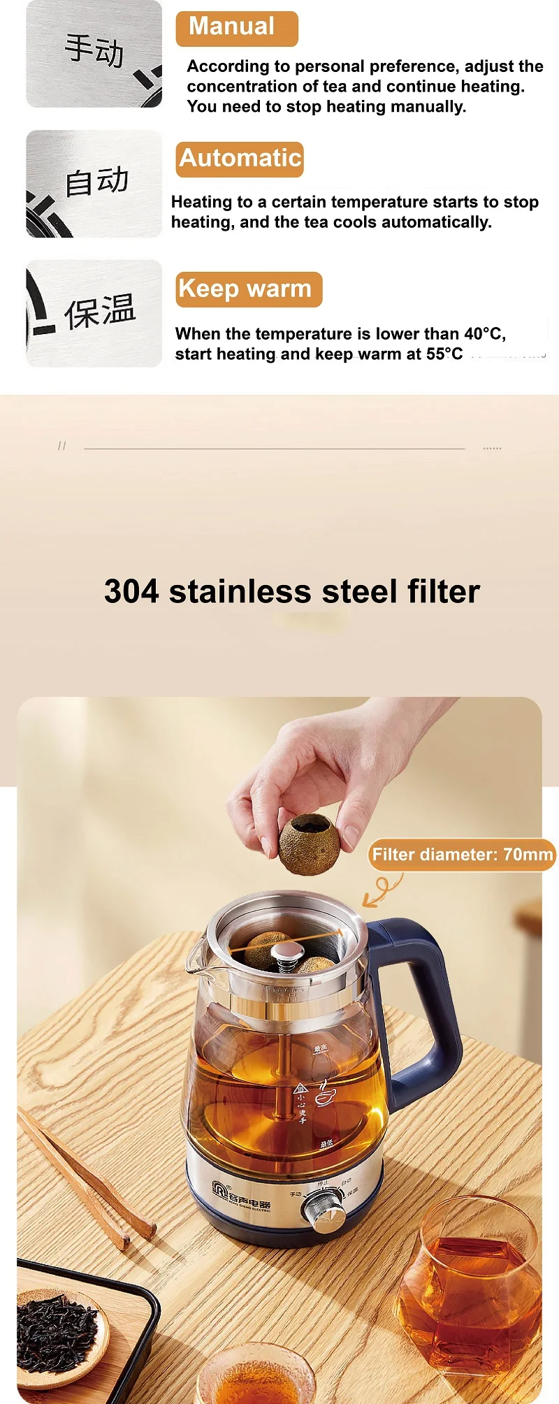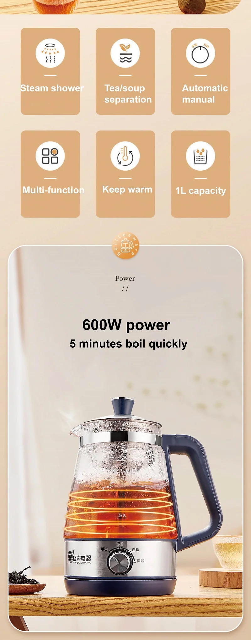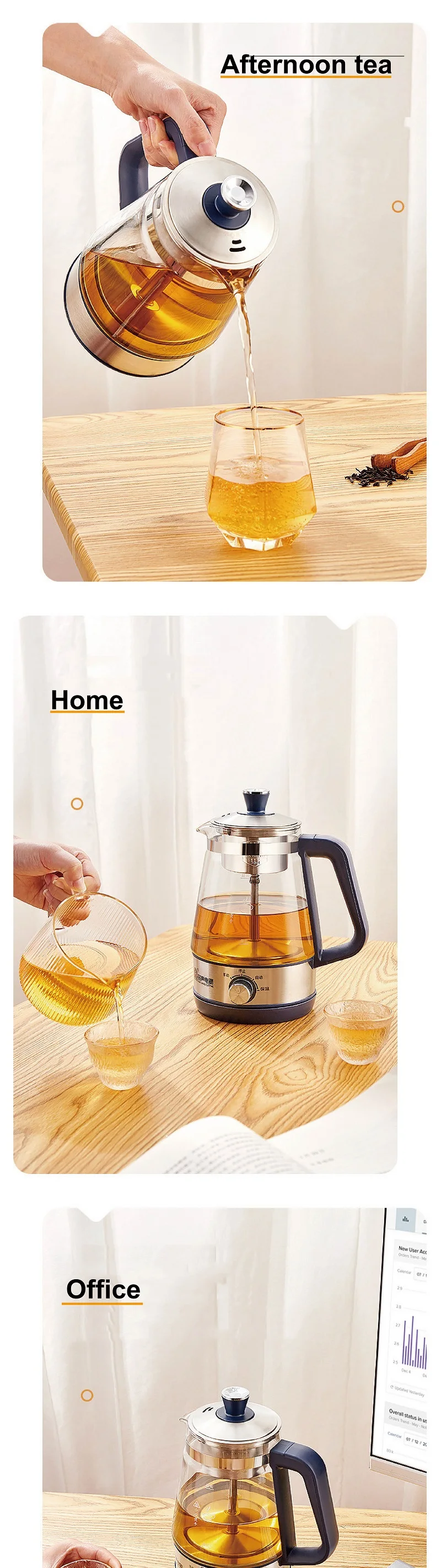 110V 220V Home Tea Maker Black Tea Pu'er Steaming Teapot Portable Automatic Thermal Keep Warm Steam Boiling Teapot Mini Health Pot 1L