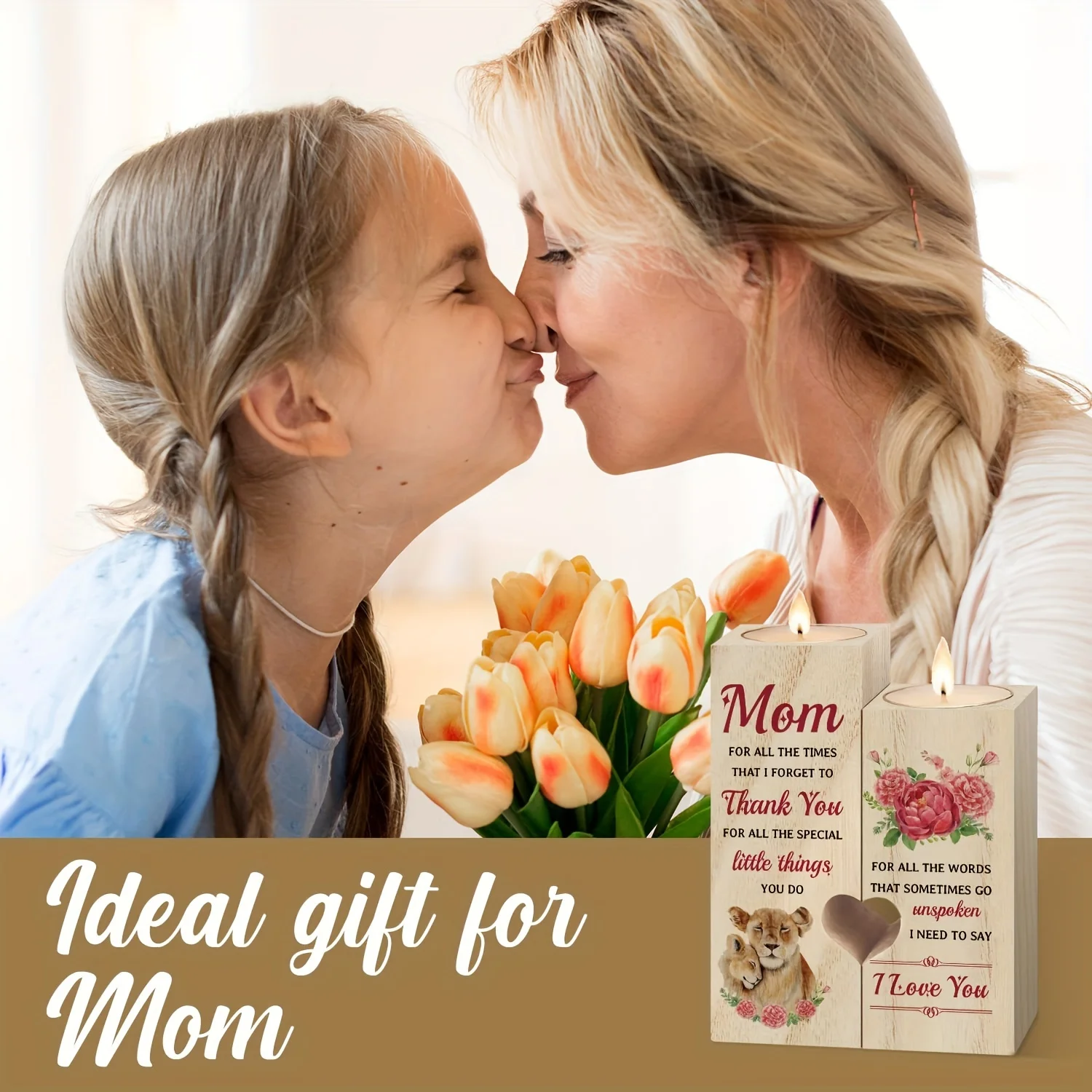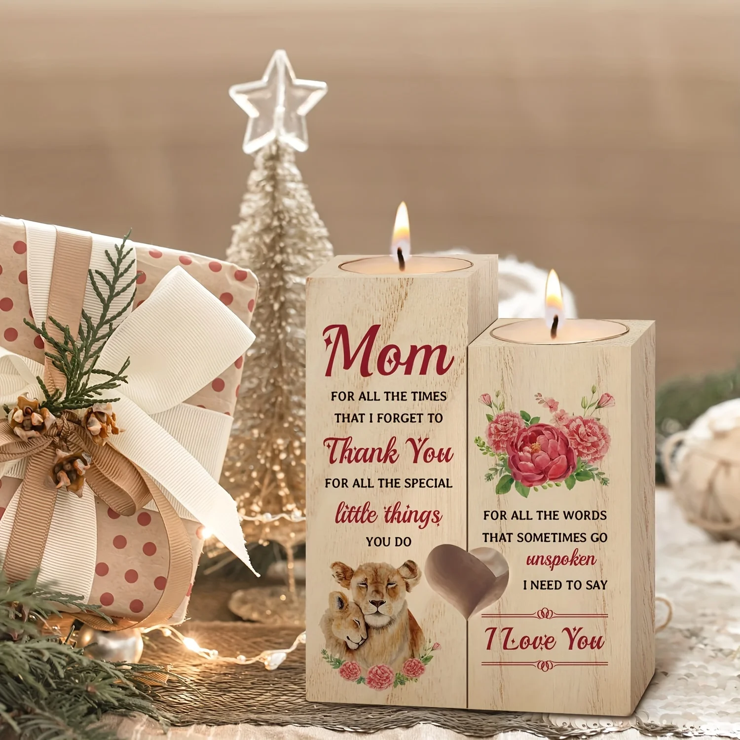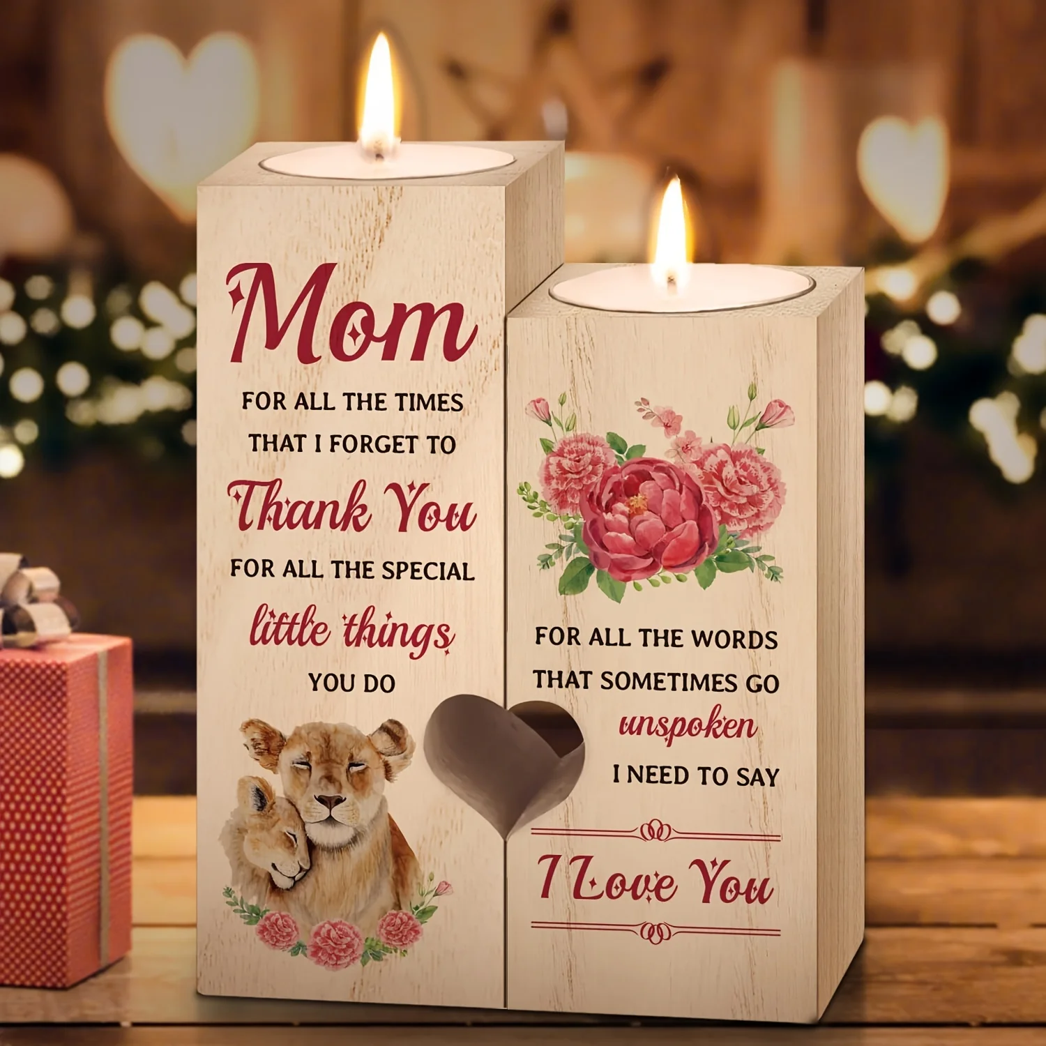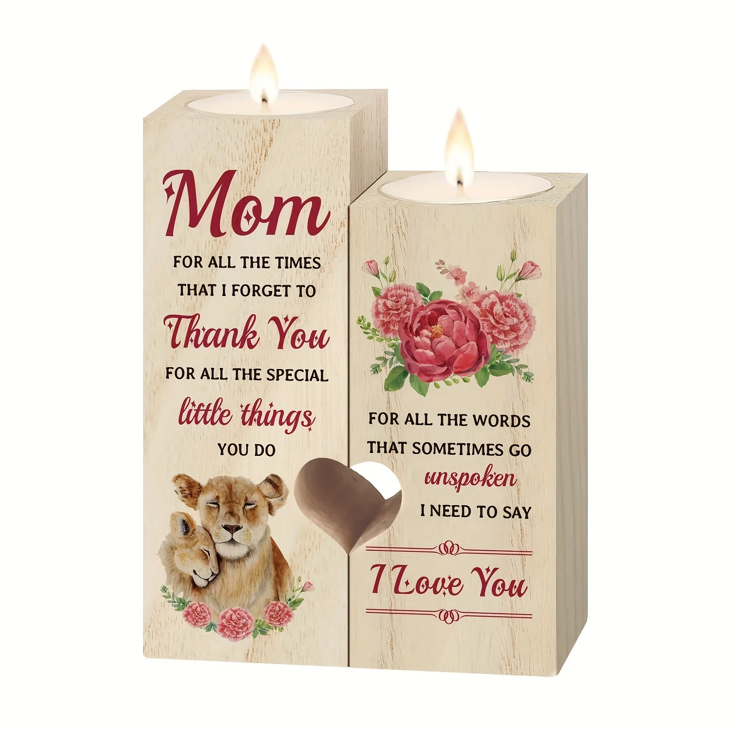 1pc Love Shaped Wooden Candle Holder – Mother's Birthday Gift, Daughter's Gift To Mother – Gift To Mother, Mother's Day, Thanksgiving Creative (without Candles)