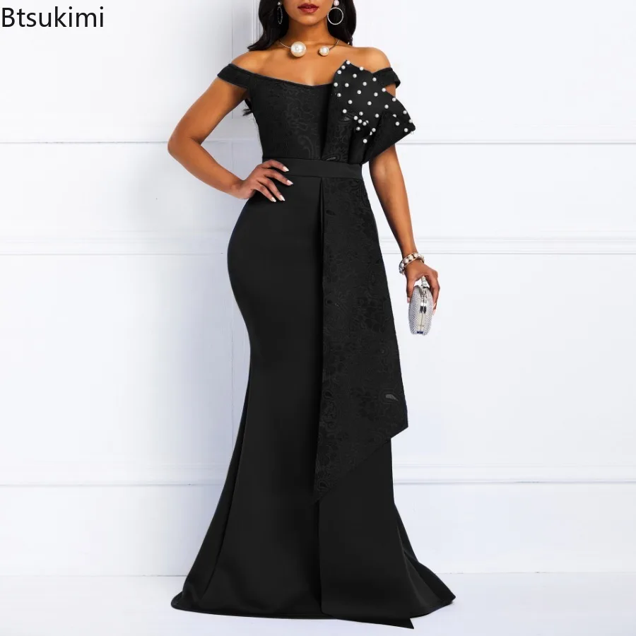 2024 Luxury Dresses Women Designers Beaded Off Shoulder Mermaid Skinny Prom Floor Length Evening Dinner Wedding Party Maxi Dress