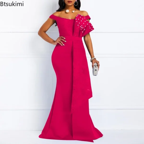 2024 Luxury Dresses Women Designers Beaded Off Shoulder Mermaid Skinny Prom Floor Length Evening Dinner Wedding Party Maxi Dress
