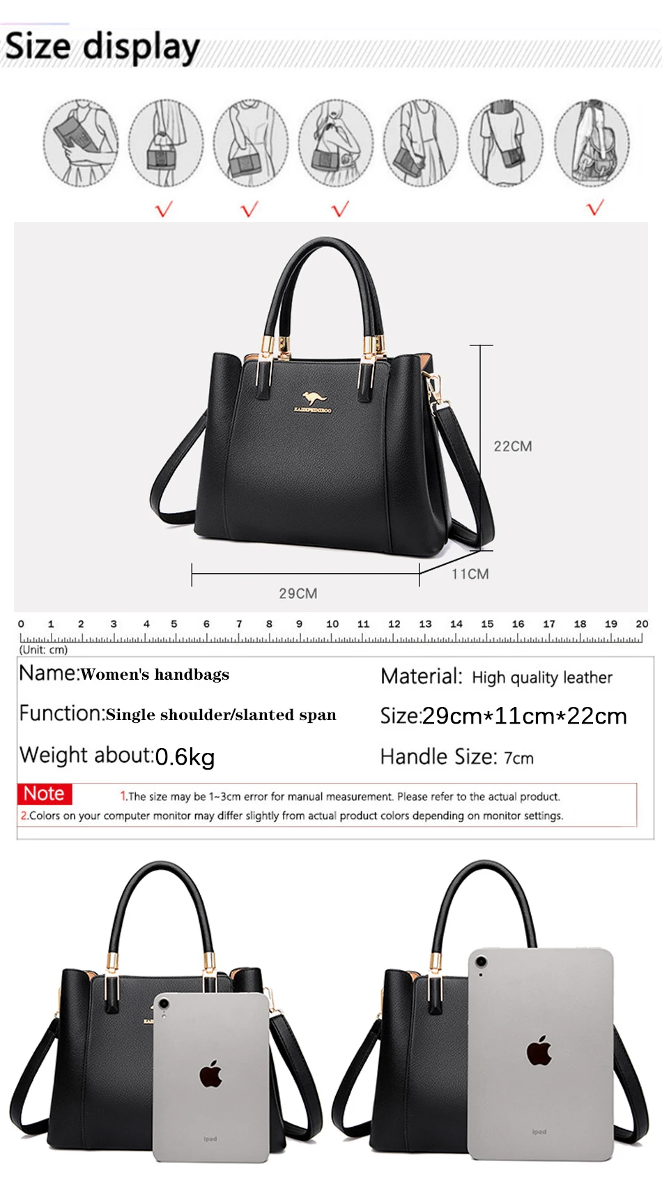 Note: 1 Inch=2.54 CM; 1 CM=0.39 Inch , Due to different batches, bag's liner may be different. Fashion designer and good price, please rest assured purchase. ( All pictures are actual photos. But due to the different light and monitor setting, minor color difference maybe exist. Thank you for understanding. )