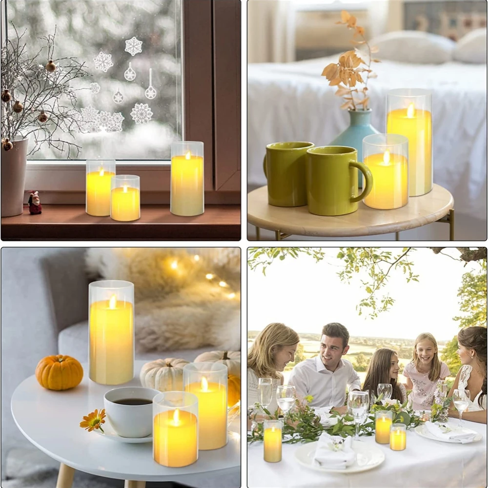 1.[Sturdy, Safe Case]Our flameless candles are covered with an unbreakable imitation glass case, which is very strong even if accidentally dropped. Safe to place around kids/pets without worrying about getting hurt by broken glass.