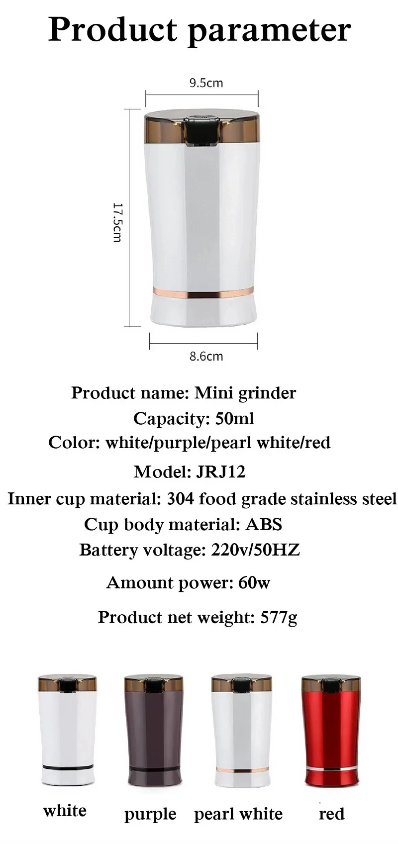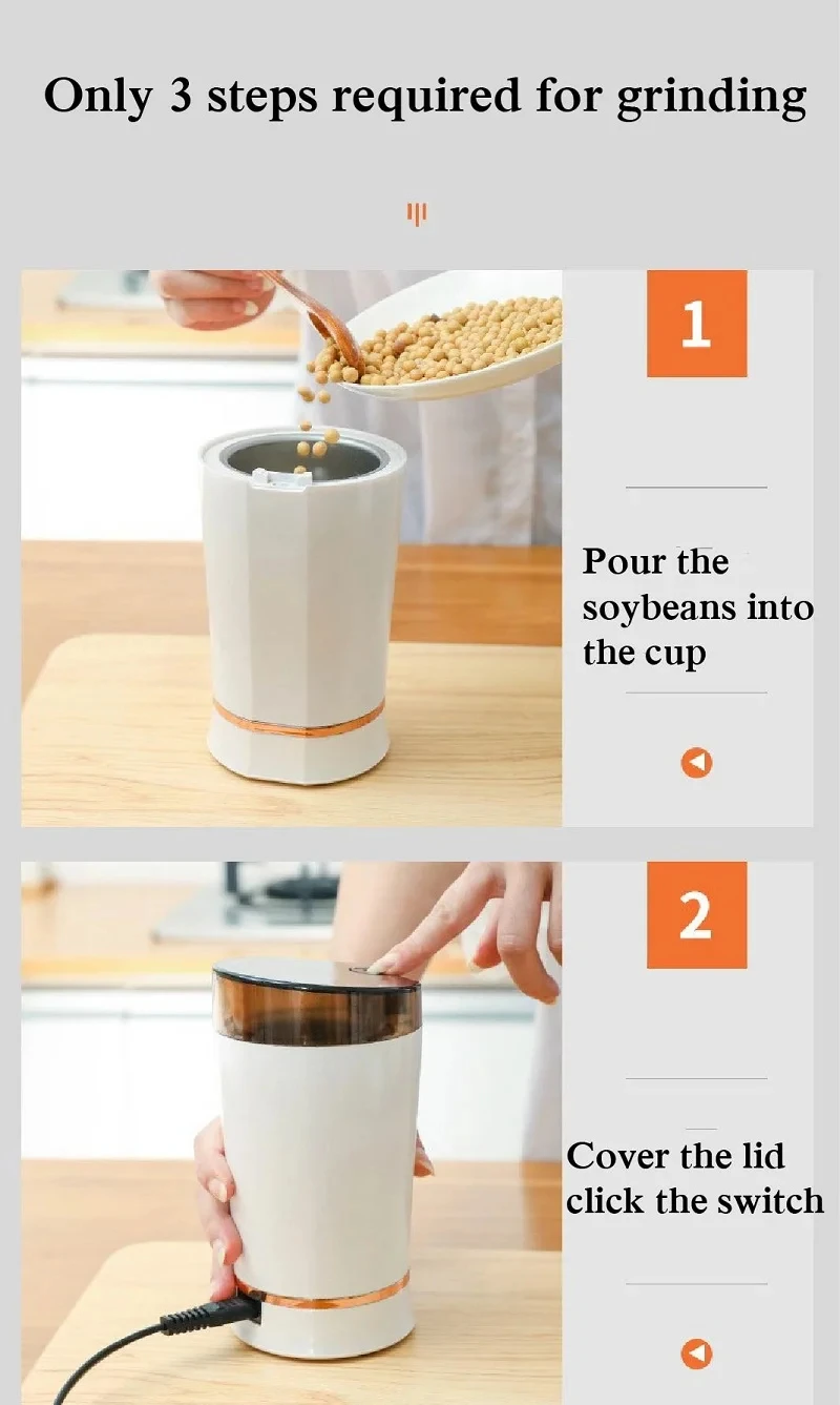 50ml Grain Mill Crusher Super Fine Grinding Machine Home Beans Spices Dry Mill Electric Coffee Grinder Kitchen Appliances 220V