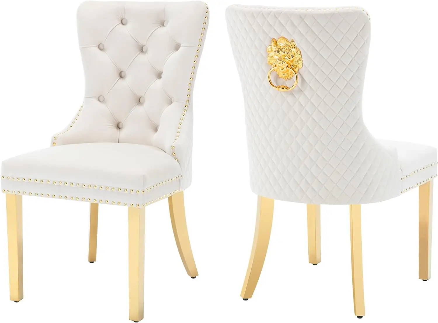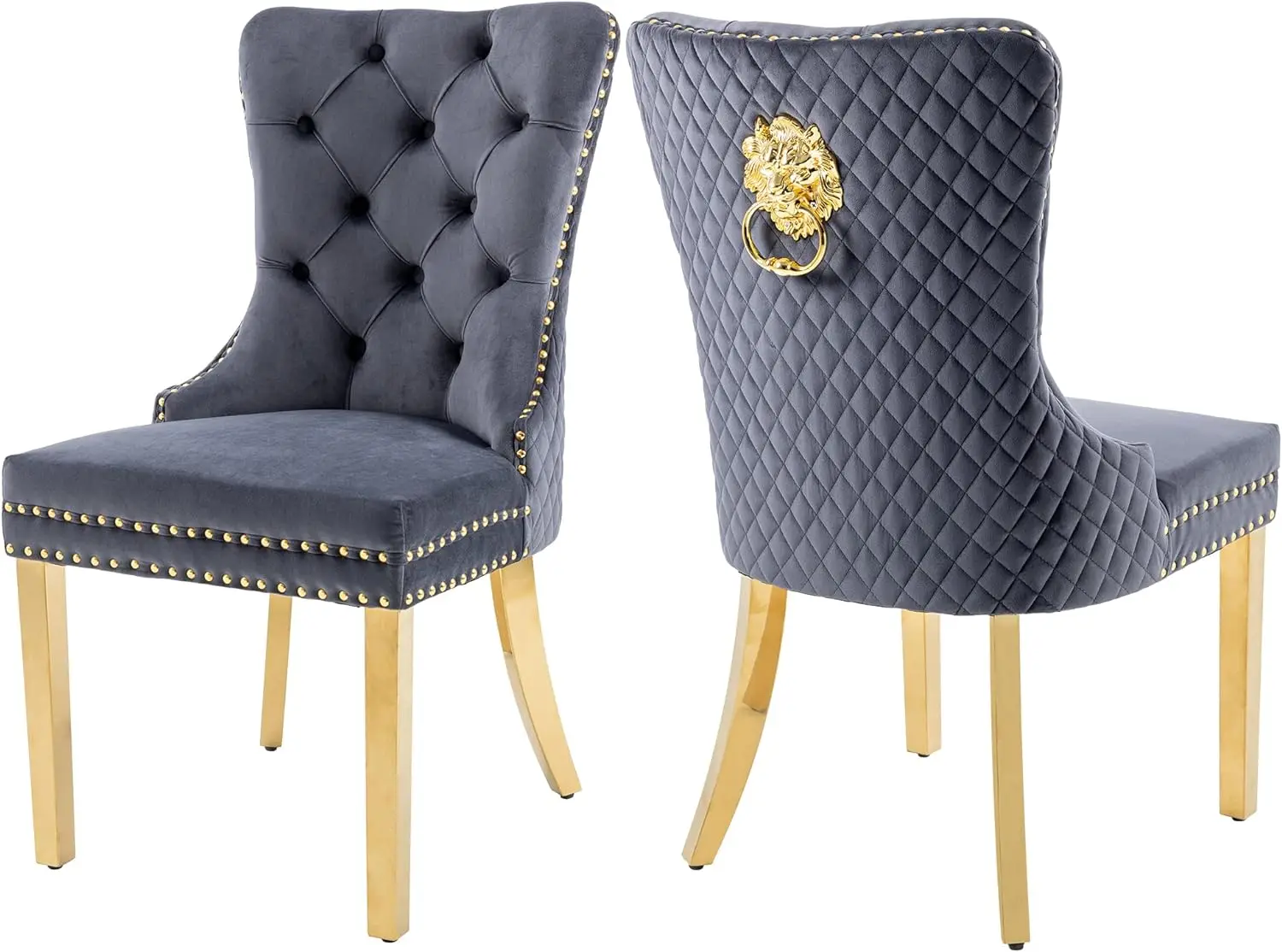 Tufted Dining Chairs with Lion Ring Knocker- Dine in Luxurious Design