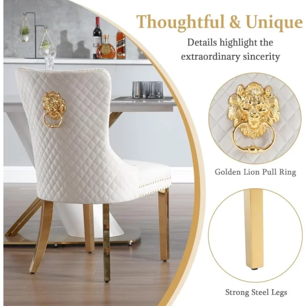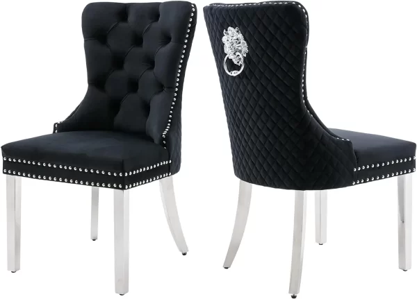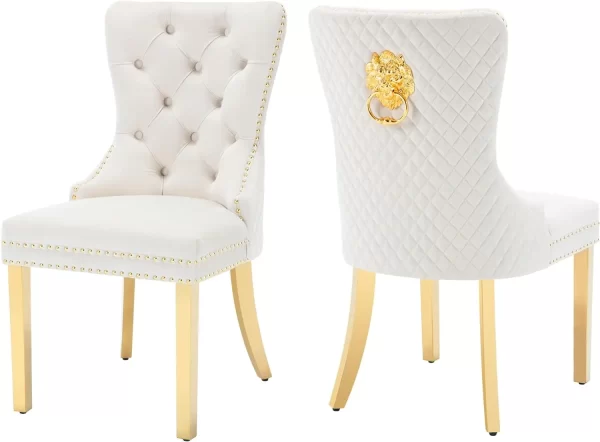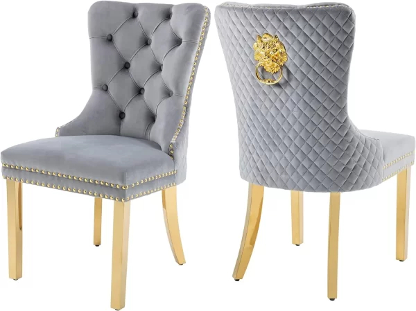 Tufted Dining Chairs with Lion Ring Knocker- Dine in Luxurious Design