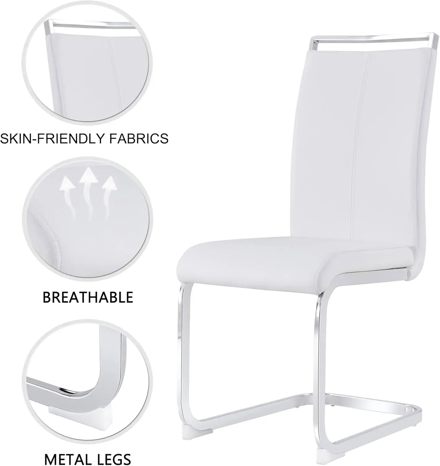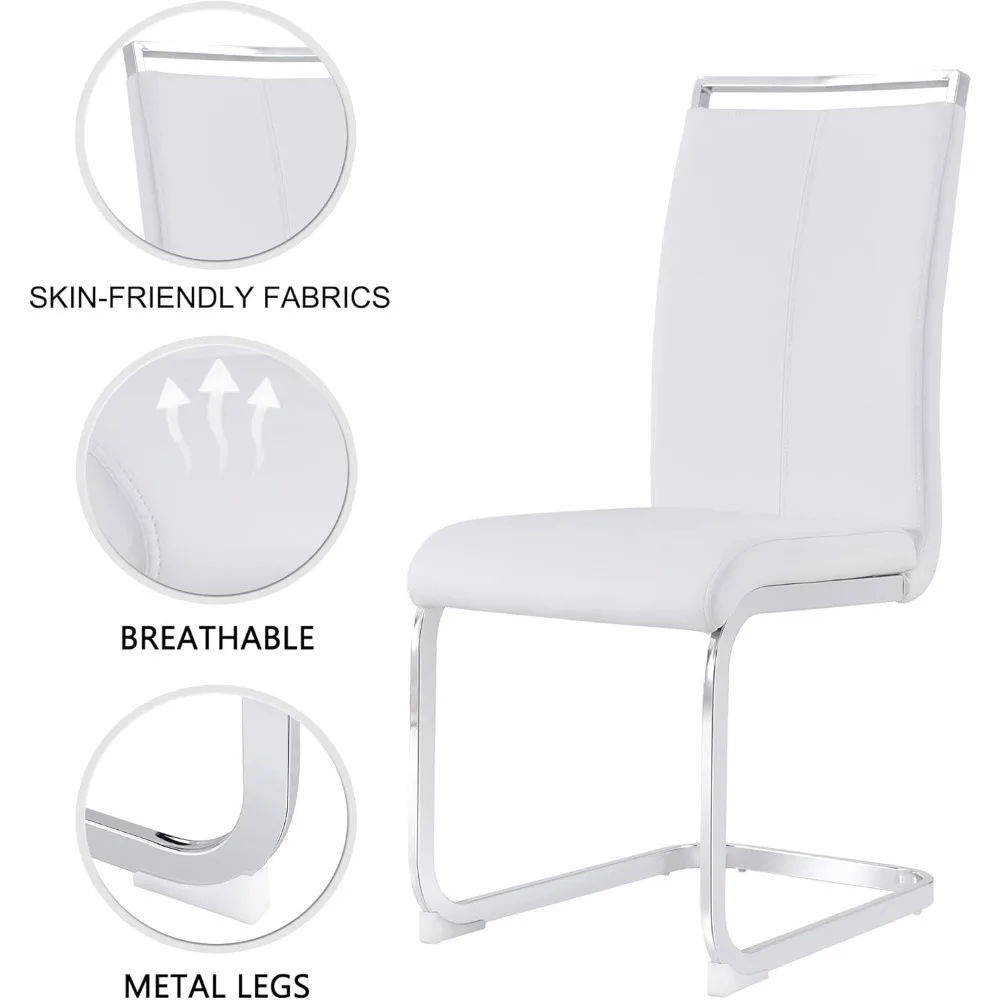 - 【4 Faux Leather Dining Chairs】The dining room set chairs are made of high quality PU leather, breathable and soft to the touch; filled with high elasticity sponge, which improves the comfort of the chairs. Thickened chrome-plated metal frame can support up to 300 lbs.