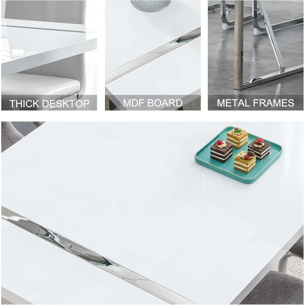 - 【Modern and stylish match】55 inch white dining table and faux leather dining chairs are a combination of simplicity and style with fresh colors, a perfect match for your dining room and kitchen. This dining table and chairs set for 4 people will enhance the dining comfort for you and your family.