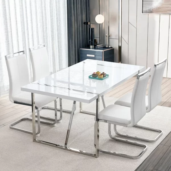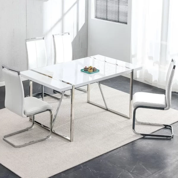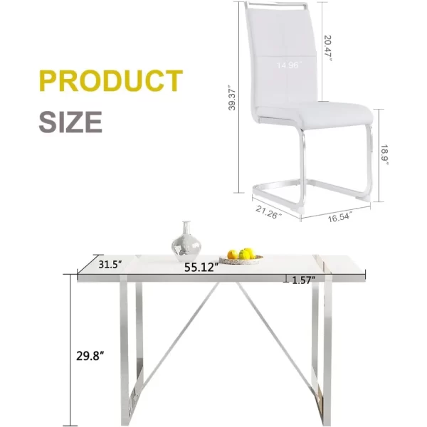 - 【Modern and stylish match】55 inch white dining table and faux leather dining chairs are a combination of simplicity and style with fresh colors, a perfect match for your dining room and kitchen. This dining table and chairs set for 4 people will enhance the dining comfort for you and your family.