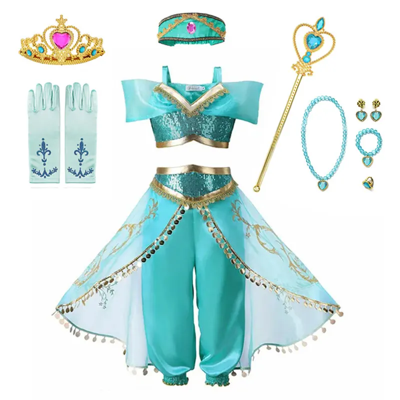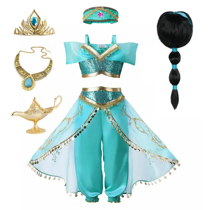 Jasmine Dress, Jasmine Dress Set1, Jasmine Dress Set2, Jasmine Dress Set3, Jasmine Dress Set4, Jasmine Dress Set5, Jasmine Dress Set6, Jasmine Dress Set7, Jasmine Dress Set8, Jasmine Wig, Aladdin Agic Lamp, Jasmine Cloak