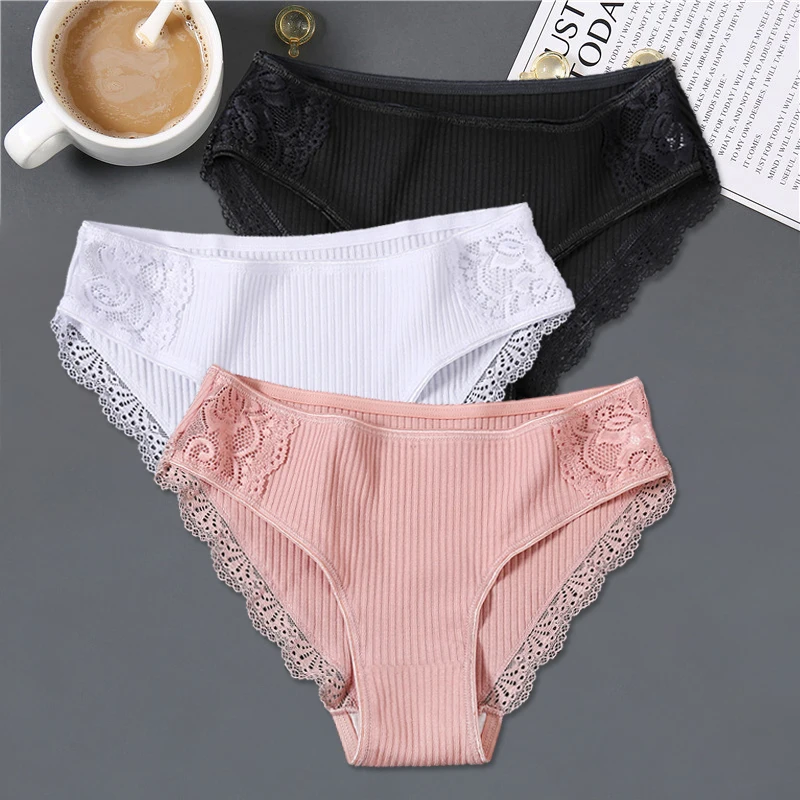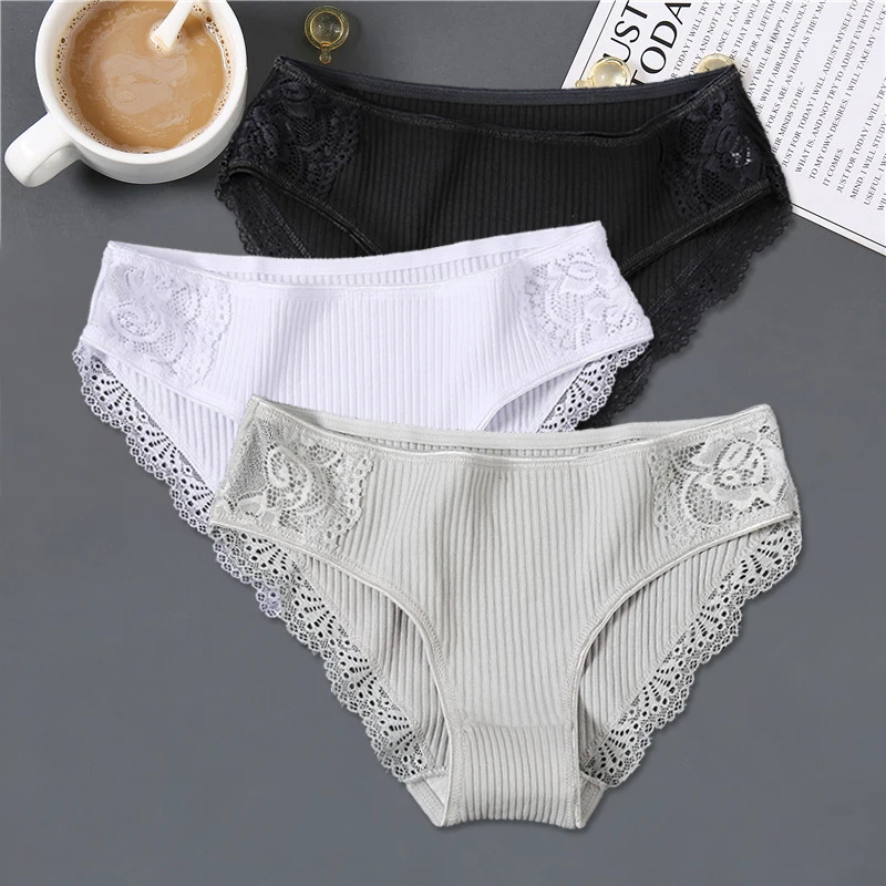 Item: FINETOO 3Pcs/set Women Cotton Panties M-2XL Low-Rise Underwear Trendy Patchwork Lace Briefs Female Soft Underpants Lingerie 2022
