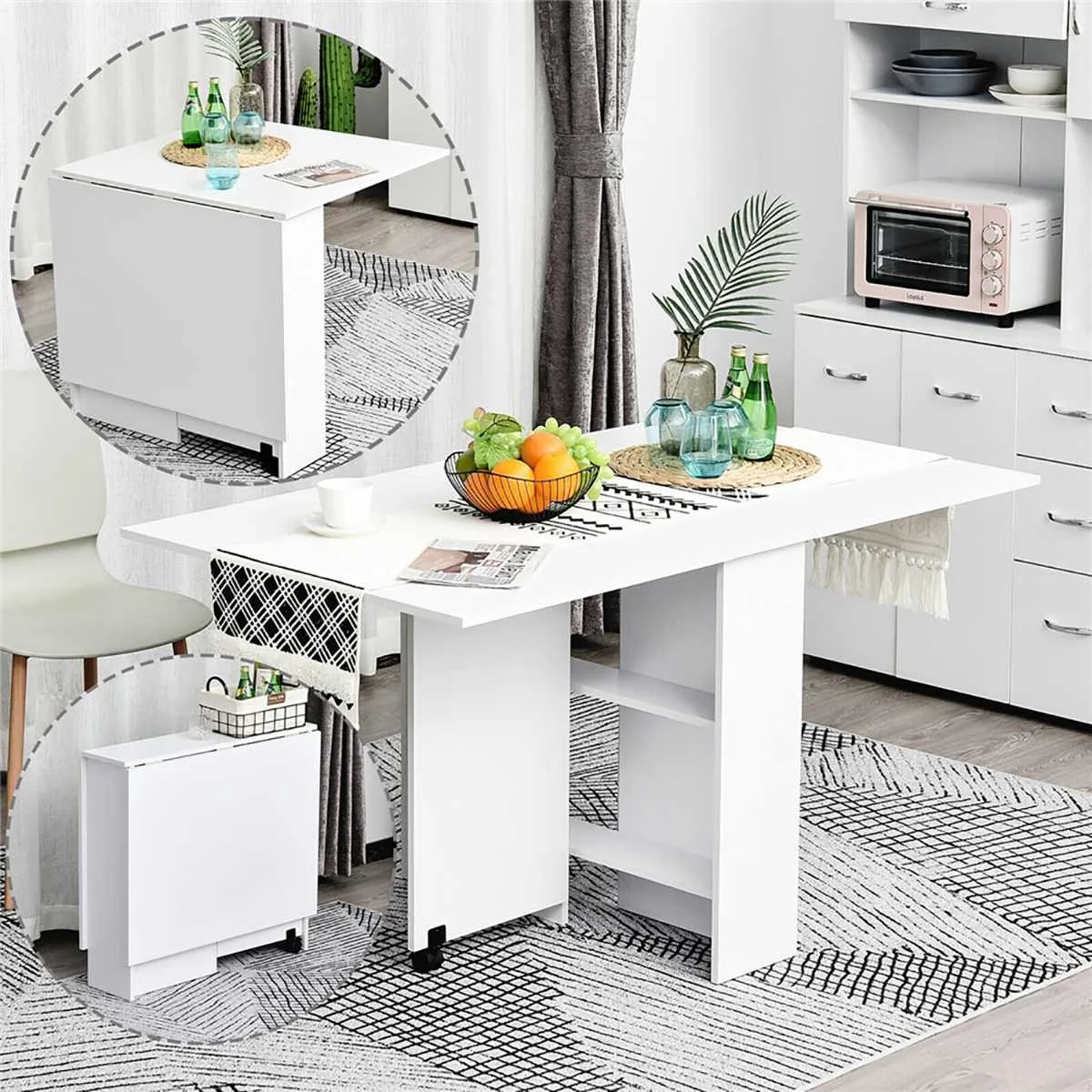 【 Suitable for Multipurpose 】This folding dining table can be folded and extended to meet your different needs. Fully unfolded, it becomes a dining table for 6 (dimensions: 55.1"L x 31.5"W x 29.1"H). You can also fold 1 desk top to become a dining table for 4 (dimensions: 31.5"L x 31.5"W x 29.1"H). When fully folded, it can be used as a console.