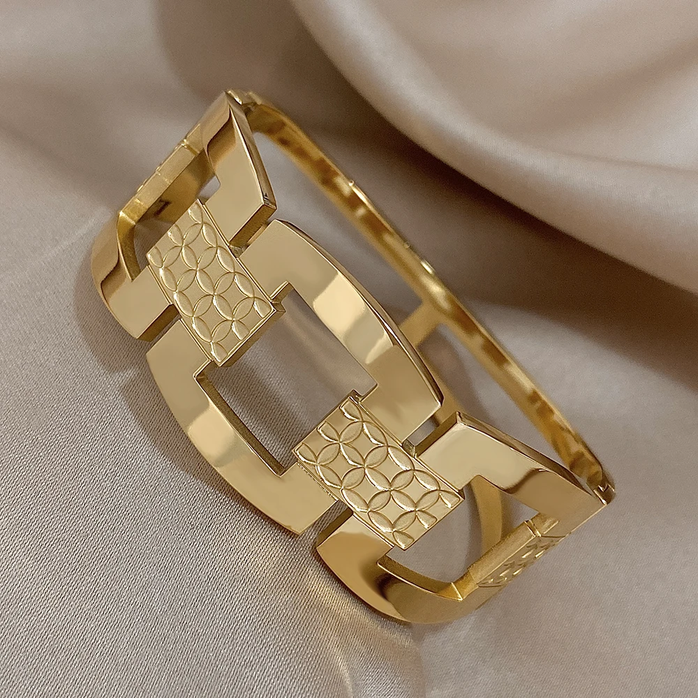 Geometric Bangle: Oversized Golden Bracelet