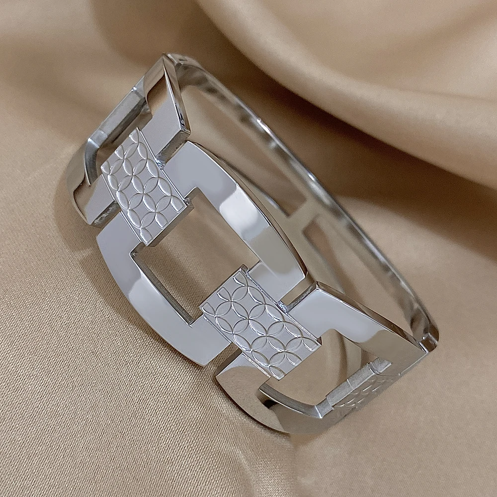 Stand out with this stylish, Trendy Chic Stainless Steel Bangle Bracelet! This elegant accessory is the perfect accent to any wardrobe, adding an air of sophistication and a touch of exquisite charm. Each bracelet is made of high-quality stainless steel , allowing you to shine in any occasion.