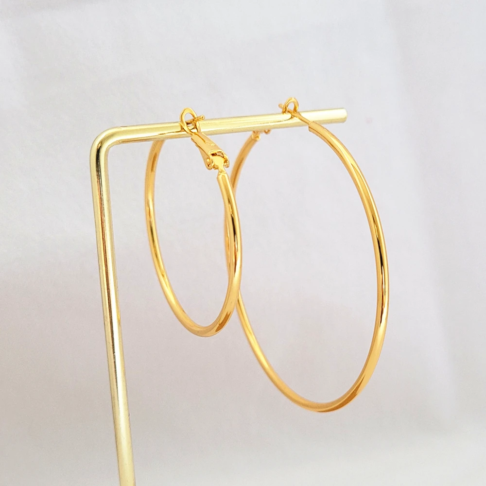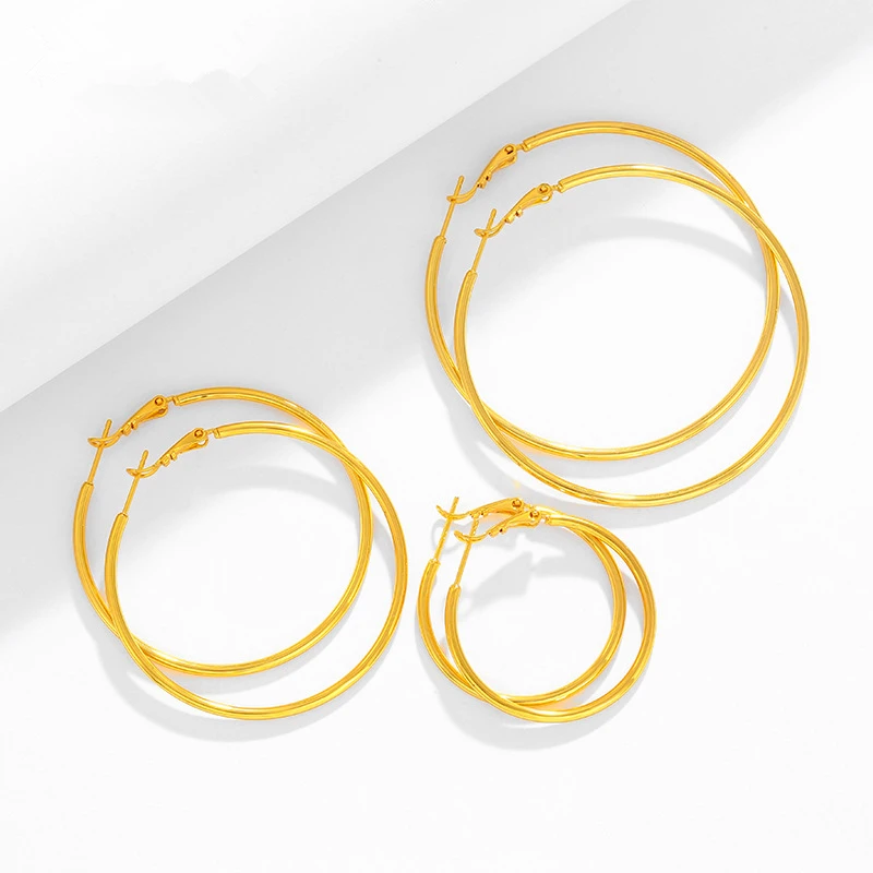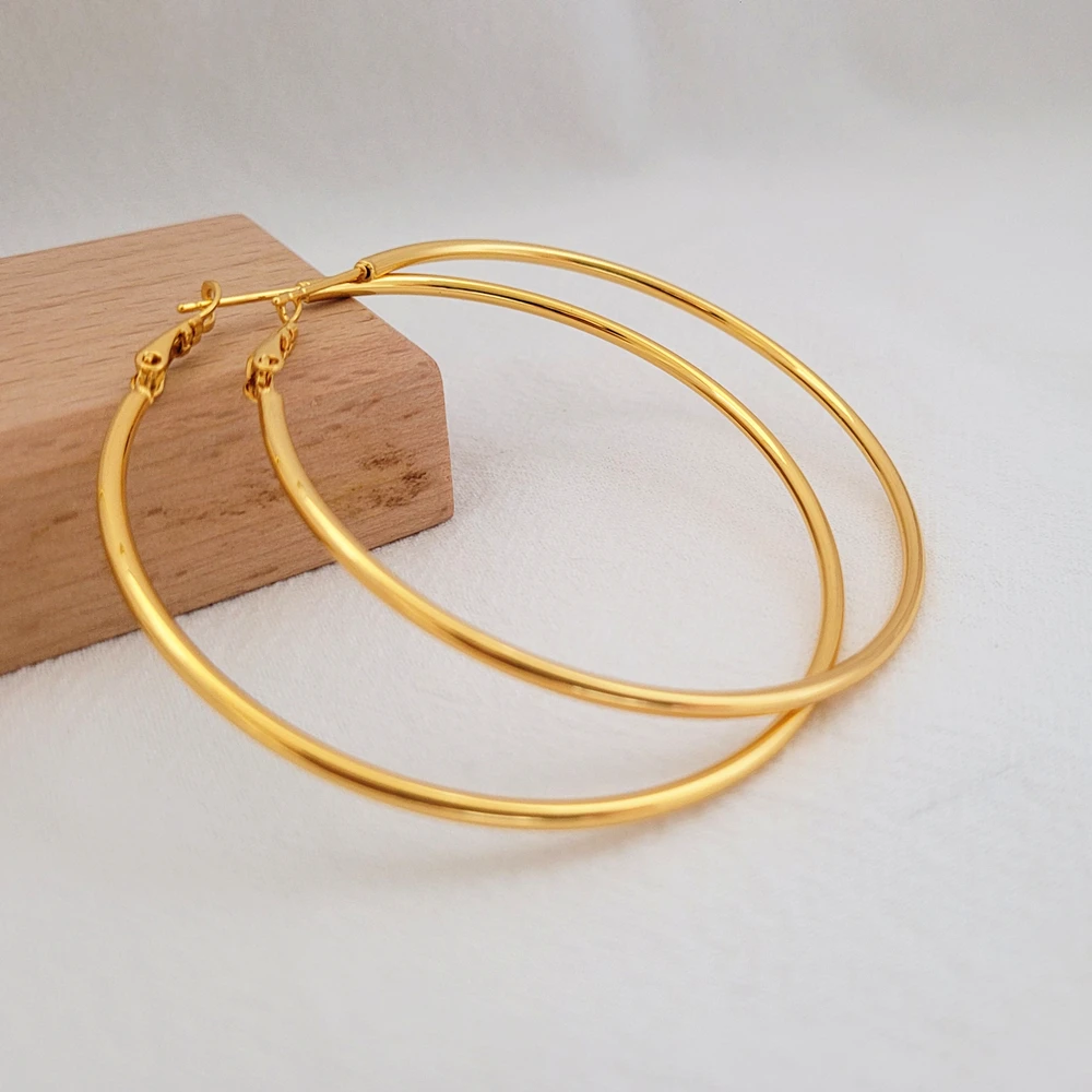 Gold Hoop Earrings 24K Yellow Gold Plated Round Big Circle Piercing Earring Set For Women 30/40/50/60mm Smooth Ear Cuff Jewelry