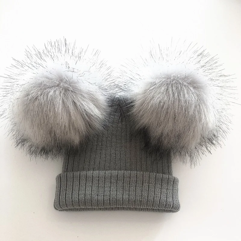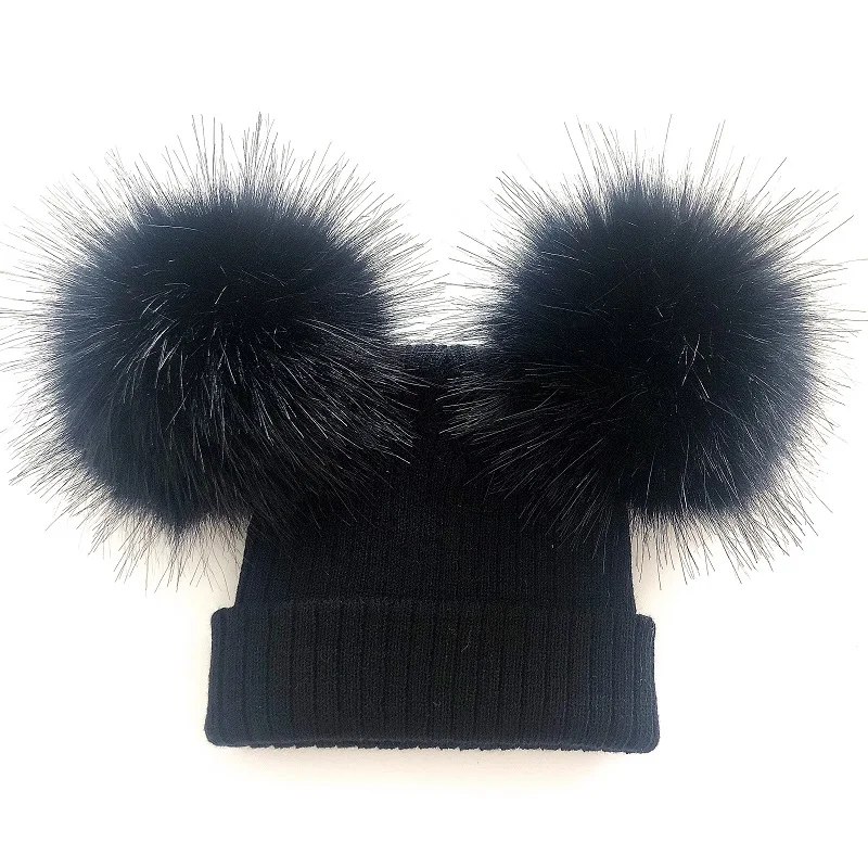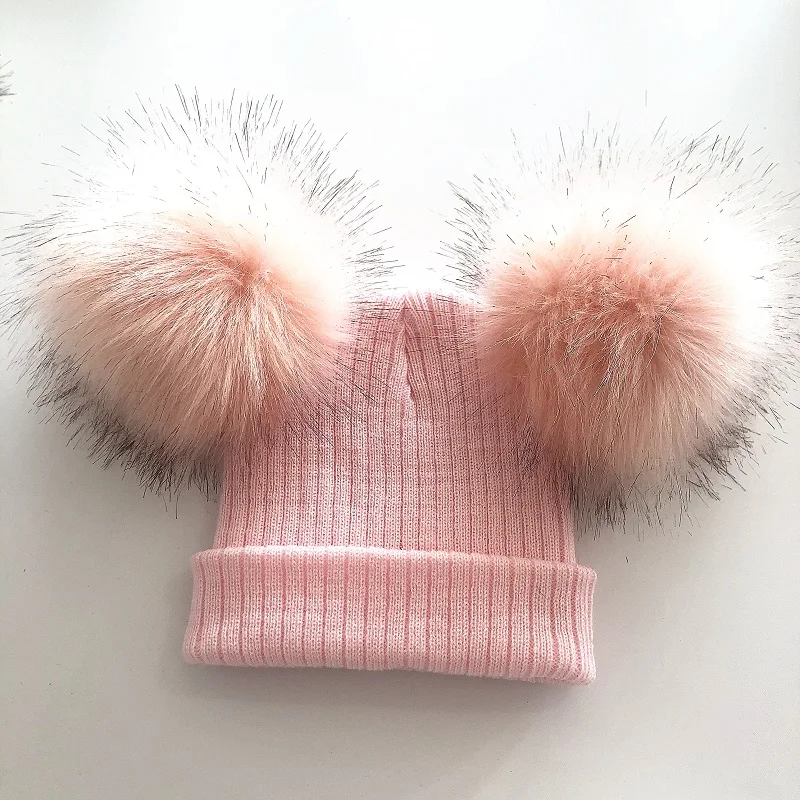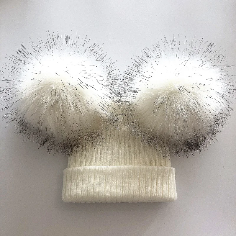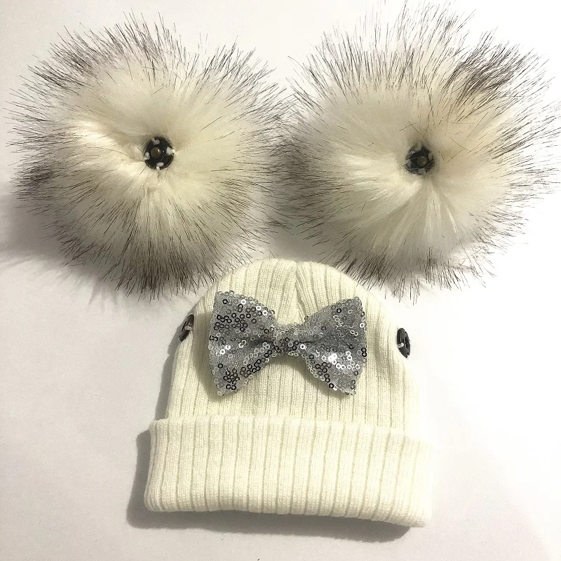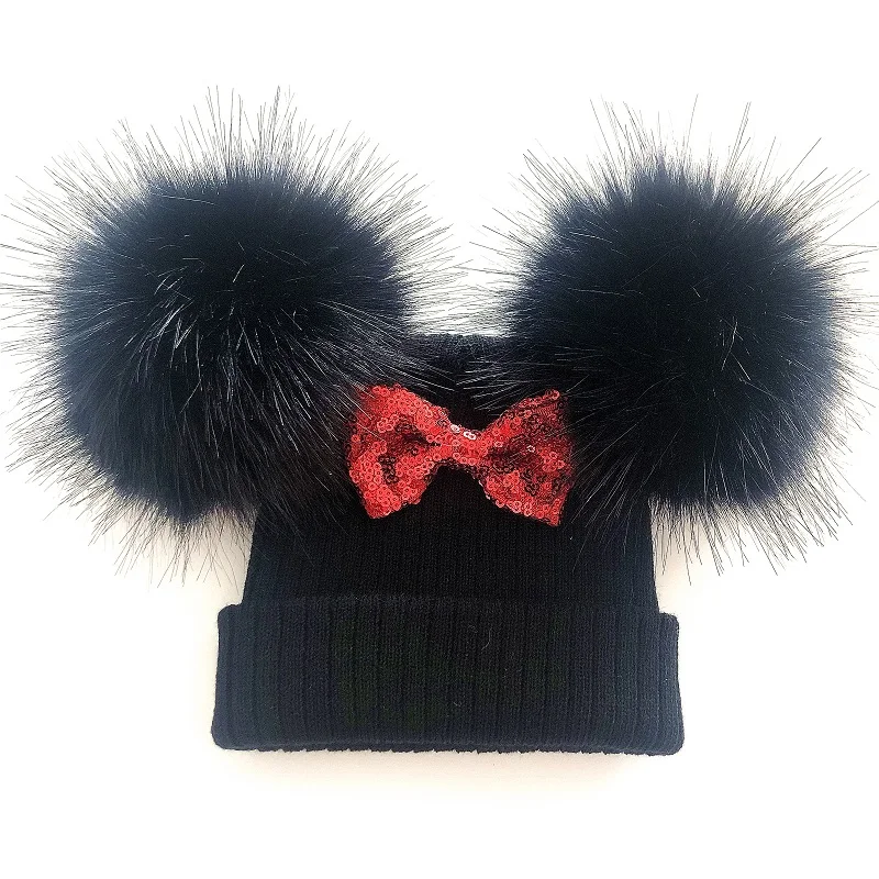 Kids Glitter Bow knot Double Pompom Hat For Baby Girls Winter Cap Scarf Children Accessories Bonnet