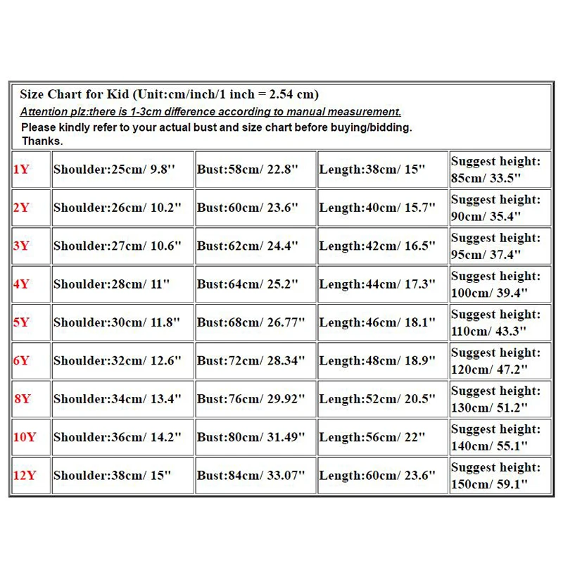 Size Chart for Kid(Unit:cm/inch/1 inch = 2.54 cm)