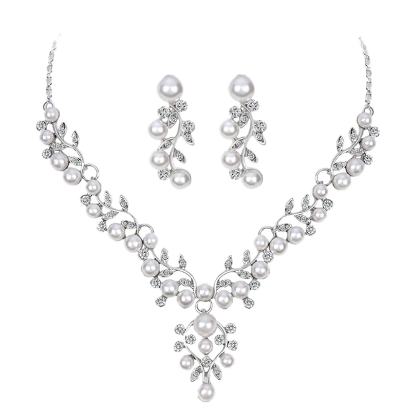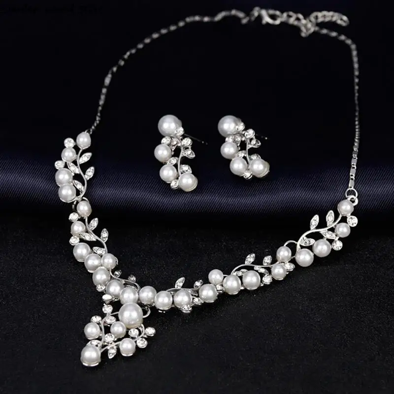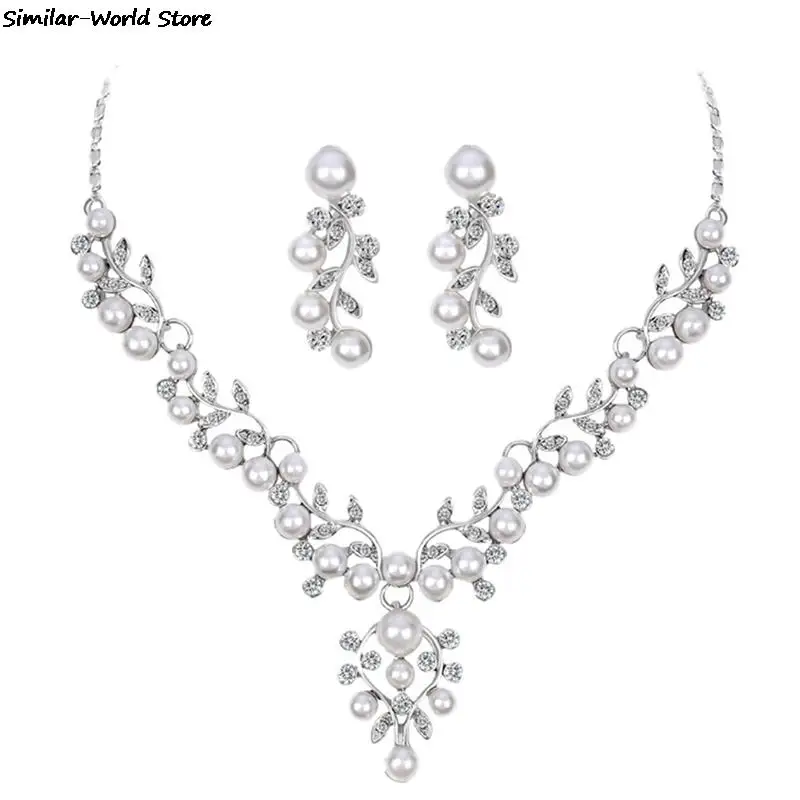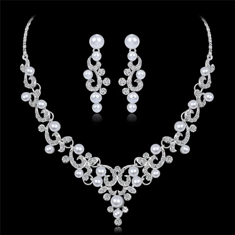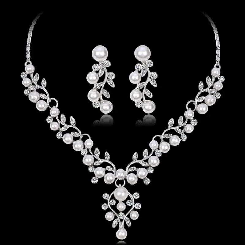 KvJJL Pearl Jewelry Sets For Women African Beads Jewelry Set Wedding Imitation Crystal Bridal Dubai Necklace Jewelery Costume