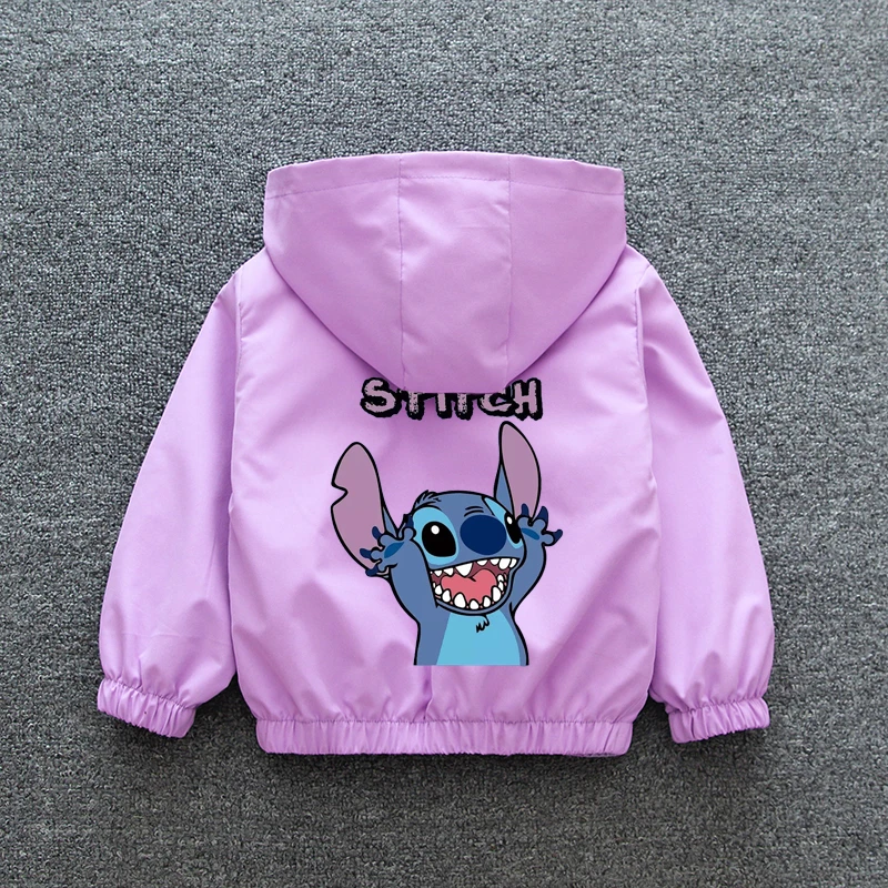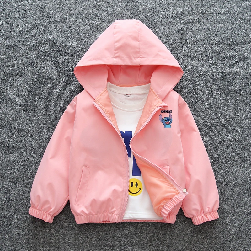 lilo and stitch children girls hooded jacket coat 2024 autumn baby boy cartoon zipper long sleeve casual clothing kids outerwear