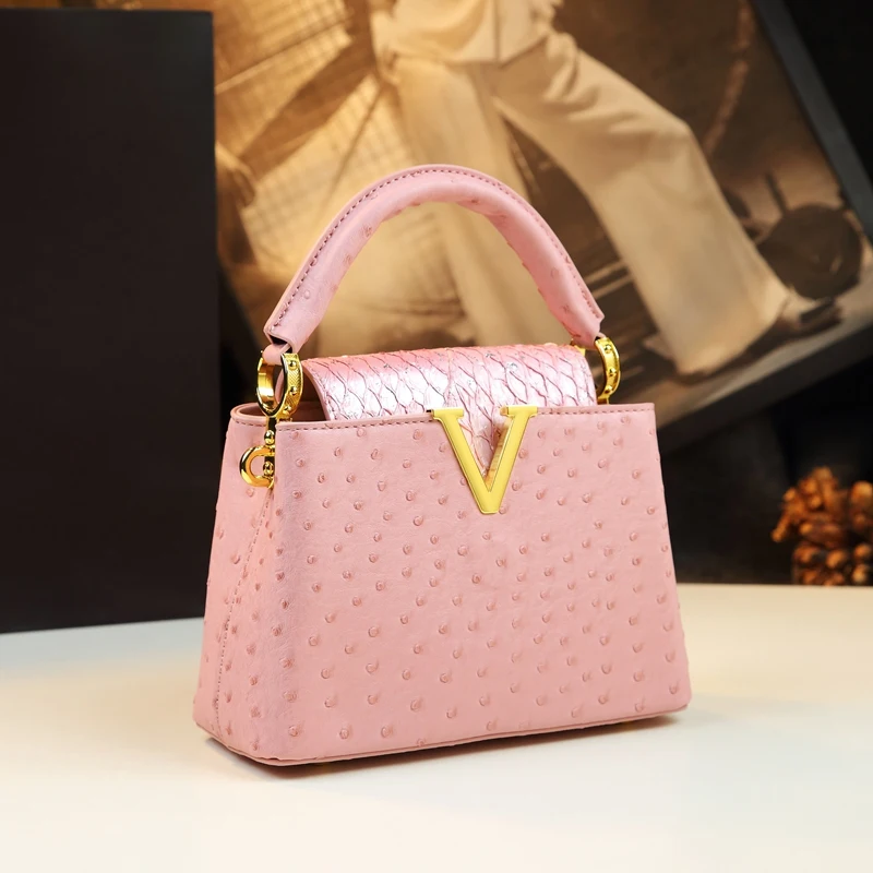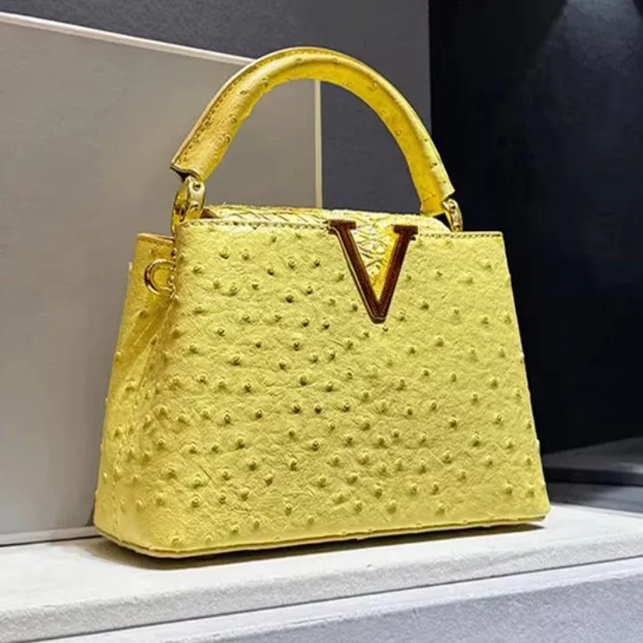 Luxury Fashion Leather Women’s Handbags V Letter Small Shoulder Crossbody Bag Niche Ostrich Print Portable Messenger Shell Bags