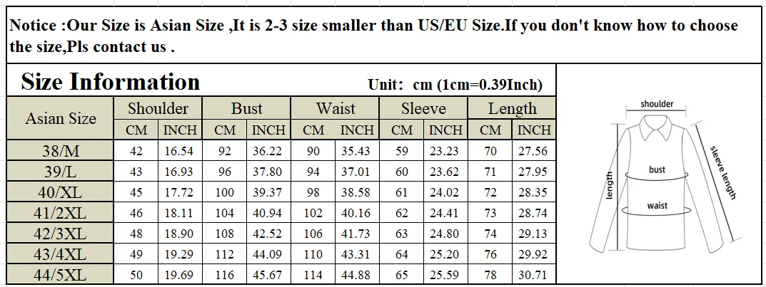 Our Size is Asian Size ,It is 2-3 size smaller than US/EU Size
