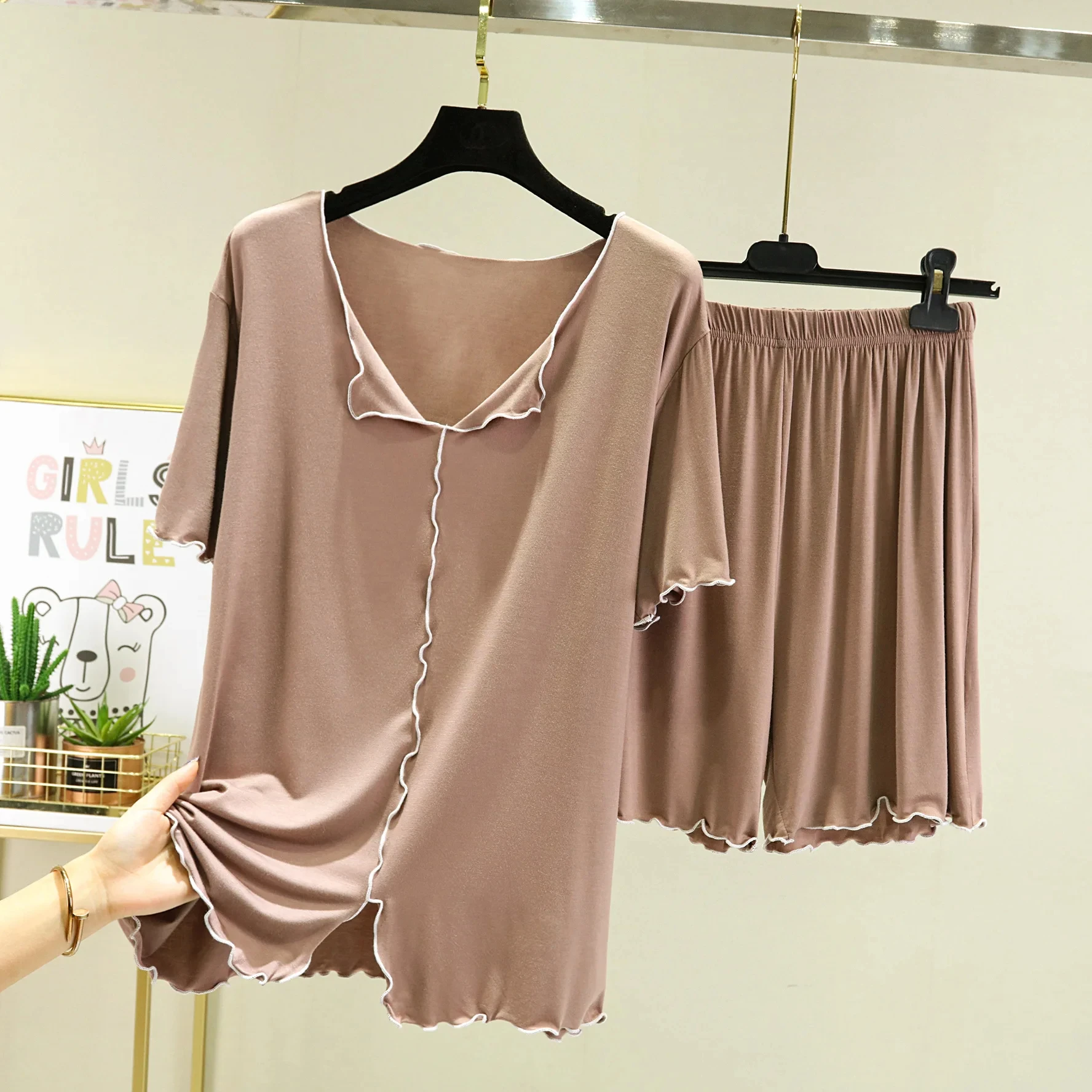 Modal loose short-sleeved shorts home clothes women summer thin style can be worn outside pajamas set versatile casual two