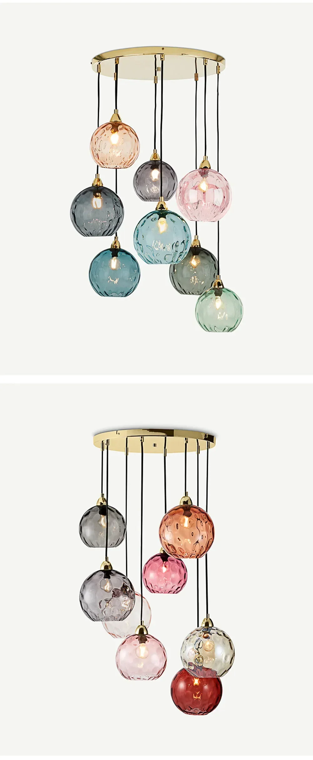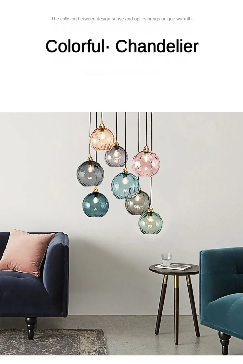 Nordic Stained Glass Chandelier for Living Room Restaurant Classical Glass Color Hanging Lamp Fixture Bedroom