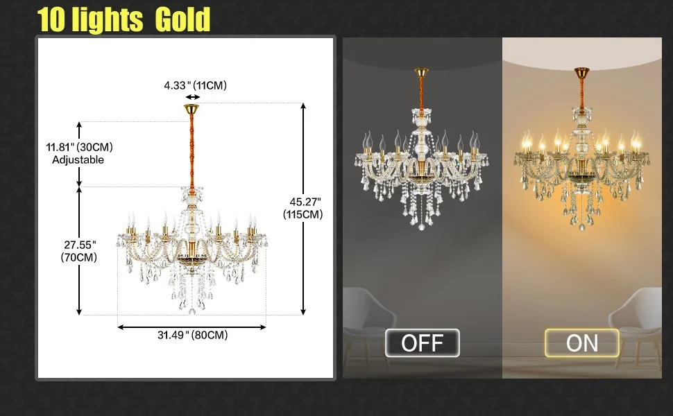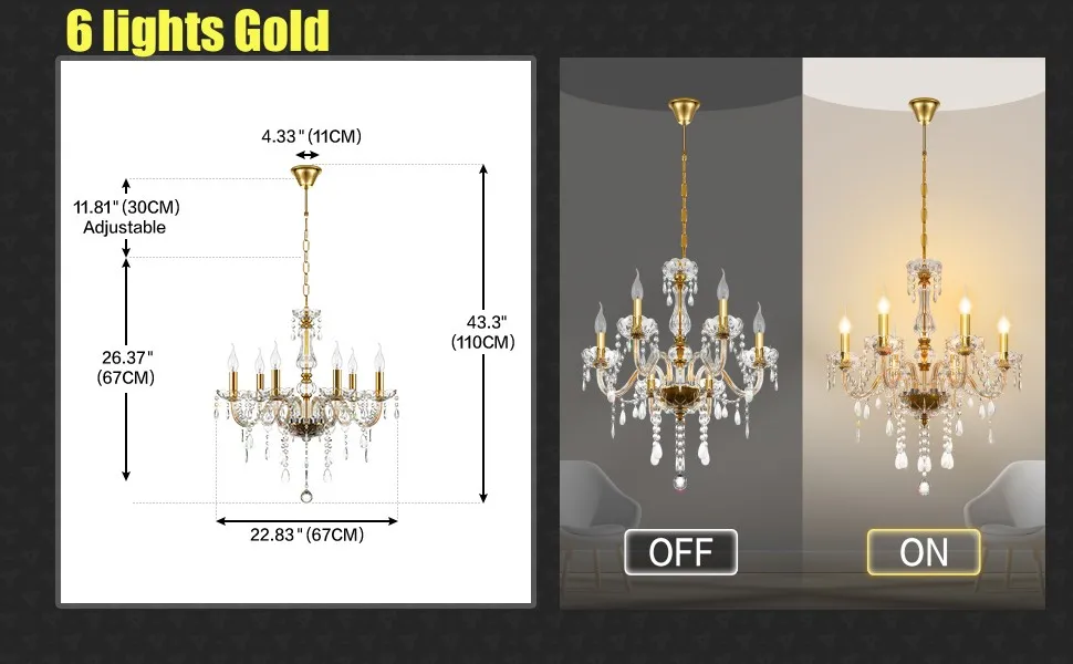 It is a classic European style chandelier. With exquisite cutting, the clear and angular crystal can reflect sparkling light to create a romantic and elegant atmosphere perfectly. It is suitable for hallway, living room, dining room, bedroom,shop, boudoir,bars and restaurants,etc.