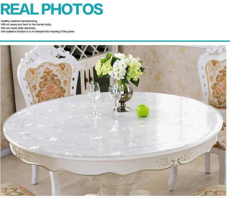 Round PVC Tablecloth Waterproof Oilproof able Cover Glass Soft Cloth Table Cover Home Kitchen Dining Room Placemat 1mm