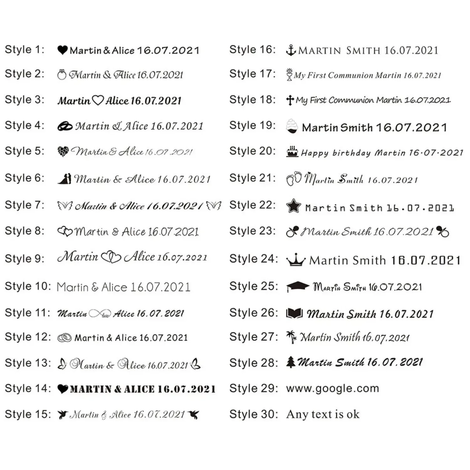 ① Please specify the content and font style to be customized (p2). You can leave a message directly or contact customer service to leave a message.