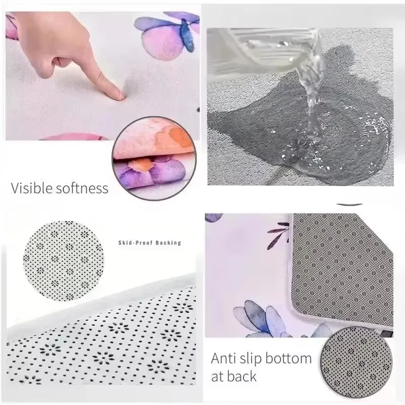 This is a new soft printing floor mat made of flannel. It has beautiful colors and surprising thickness. It is suitable for the bedroom, living room and baby room, and has the function of anti-slip and anti-fall.