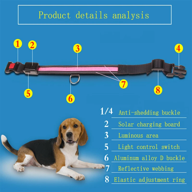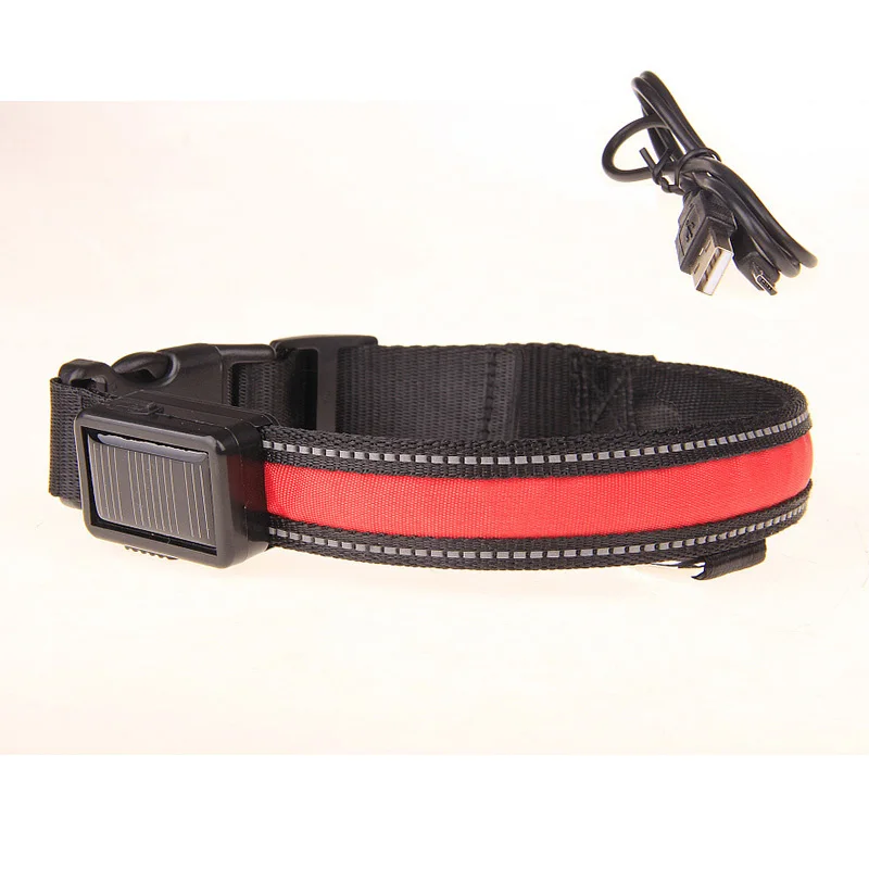 Solar Charging Led Dog Collar USB Rechargeable Night Safety Collar Perro Led Usb Adjustable Pet Led Dog Collar Light Usb Glowing