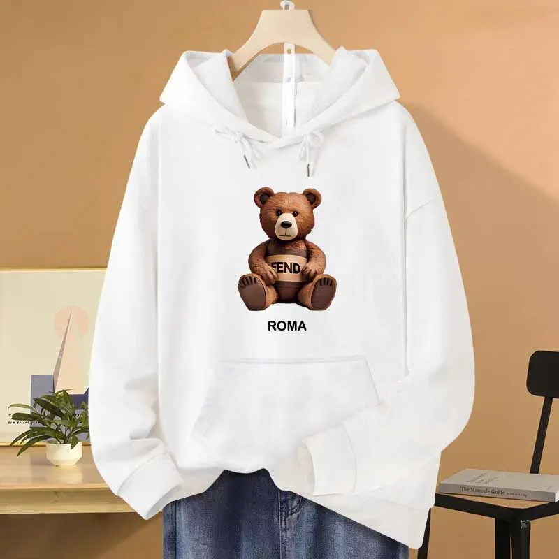 Women Bear Print Luxury Hoodies Vintage Retro Y2k Pullover Hooded Sweatshirt Female Designer Casual High Quality Trendy Clothing