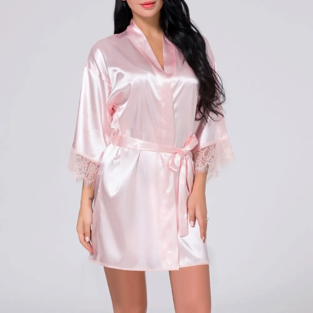 * Item Description:Women Sexy Lingerie Satin Robes Lace Nightdress Nightwear Sleepwear Kimono