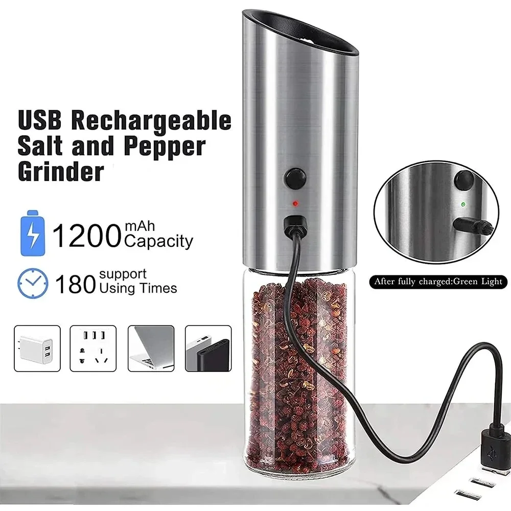 1. [USB rechargeable and unique design]: Our upgraded electric salt and pepper grinder saves you from frequent battery replacement. Unlike other manual or AAA battery-powered pepper grinders, this electric salt and pepper grinder has a built-in rechargeable 1200mah lithium battery , allowing you to charge it anytime and anywhere without the hassle of replacing the battery. You can use mobile power, AC adapter, laptop, etc. to charge. Long standby time, one charge can support 180 times of use time.